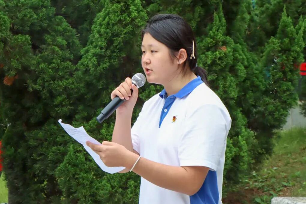 24电商创新2班焦若水同学作为学生代表发言,话语铿锵有力:“我们要把对先烈的无限缅怀,转化为刻苦学习、锐意创新的不竭动力。”