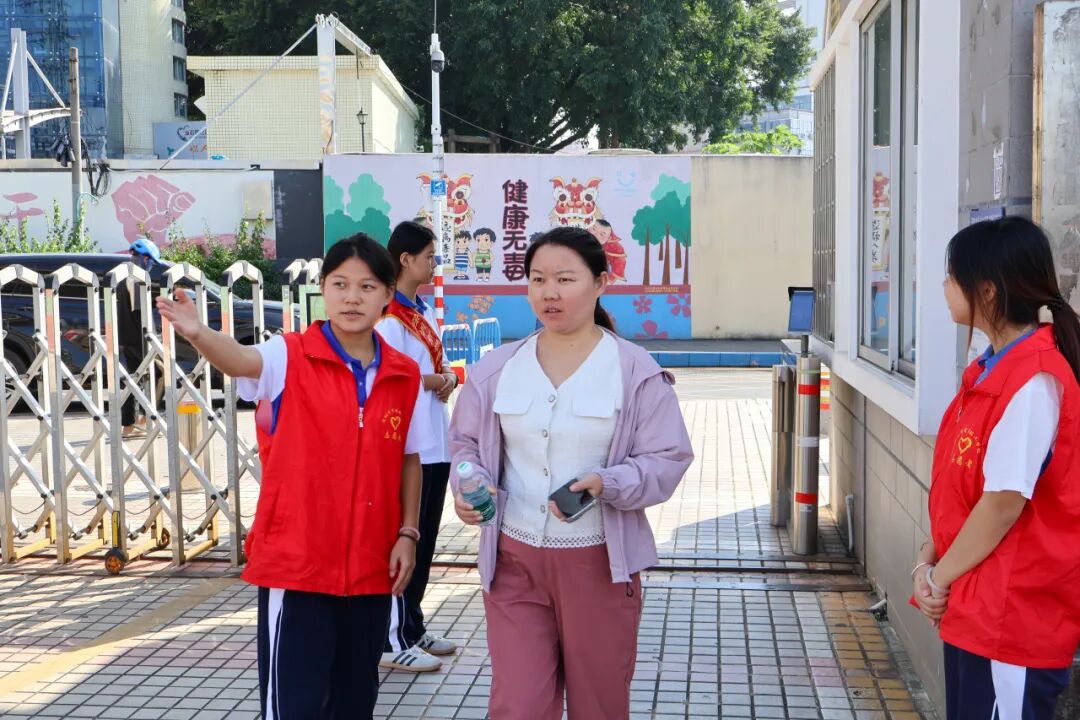 学生志愿者早早在校门等候