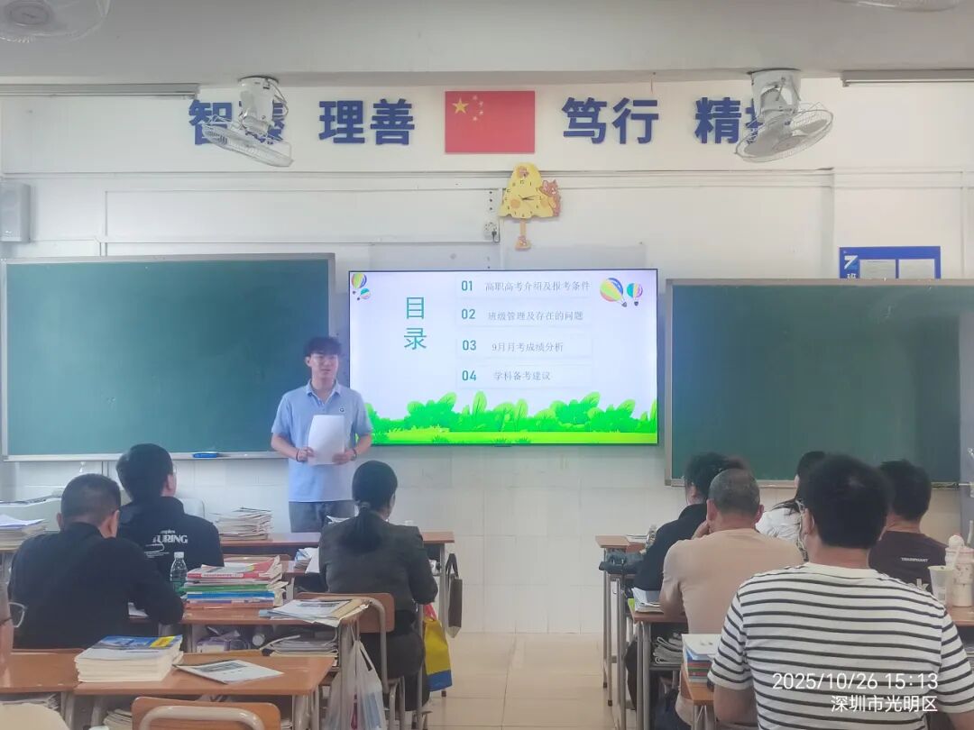 各班班主任通过PPT与家长们共同探讨家庭教育的科学理念与方法,详细解读高职高考的报名流程与关键节点。